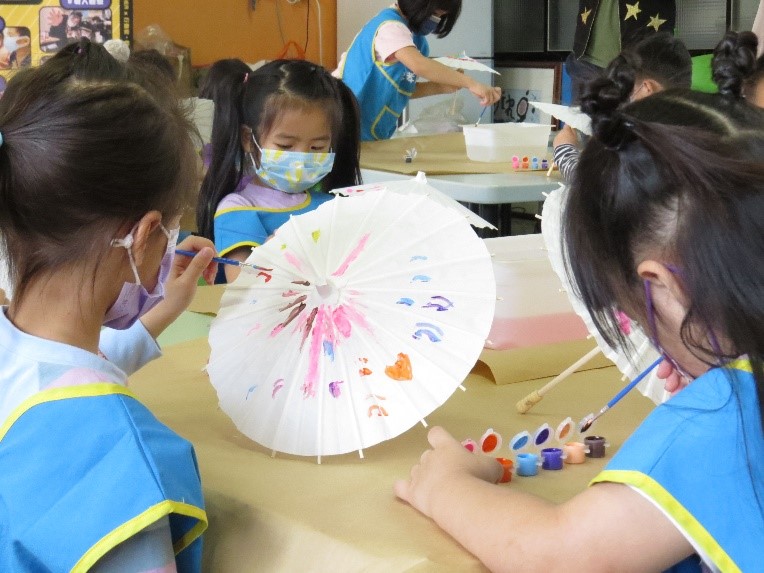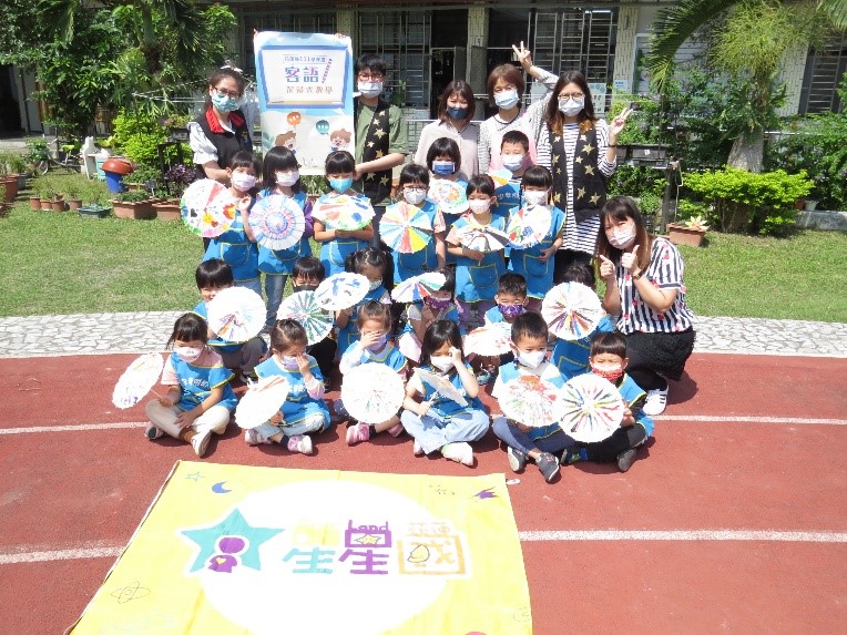 【沉浸式客語教學】-專業團隊帶領忠孝附幼客語互動教學 由客語薪傳師游淑梅老師以及花蓮星星國團隊,於5月02日進入忠孝國小附設幼兒園,帶領忠孝國小附設幼兒園的學生們在輕鬆的氣氛中,以遊戲的方式讓孩子們學習客語文化。游淑梅老師以帶動唱跳的活動方式與孩子們互動,而星星國專業團隊則帶領學生們歌唱以及客家油紙傘彩繪DIY,讓學生盡情揮灑創意,使孩子們在自由的且輕鬆的氣氛中體驗客家文化的精神核心。