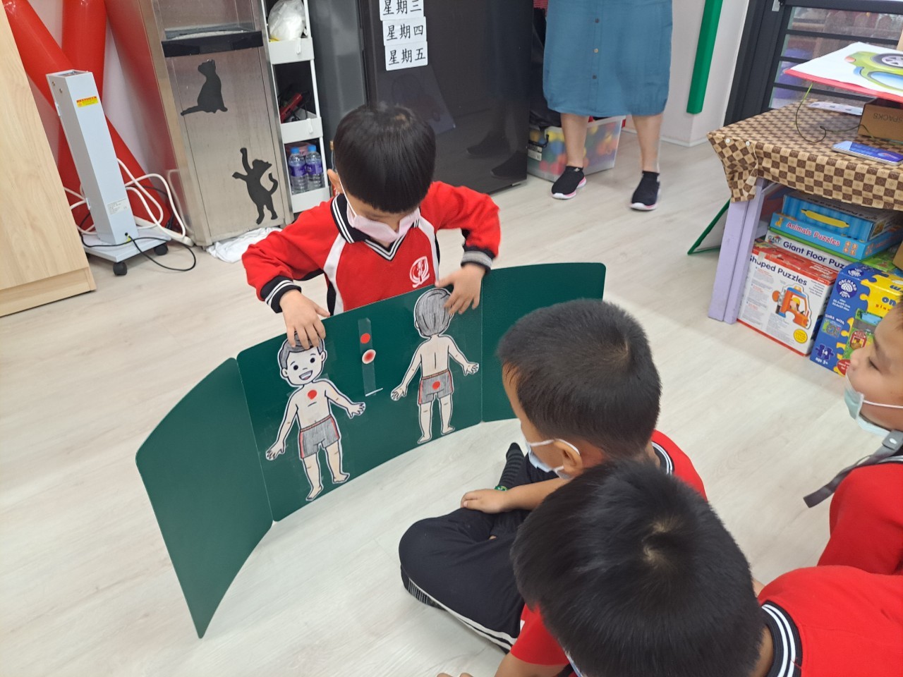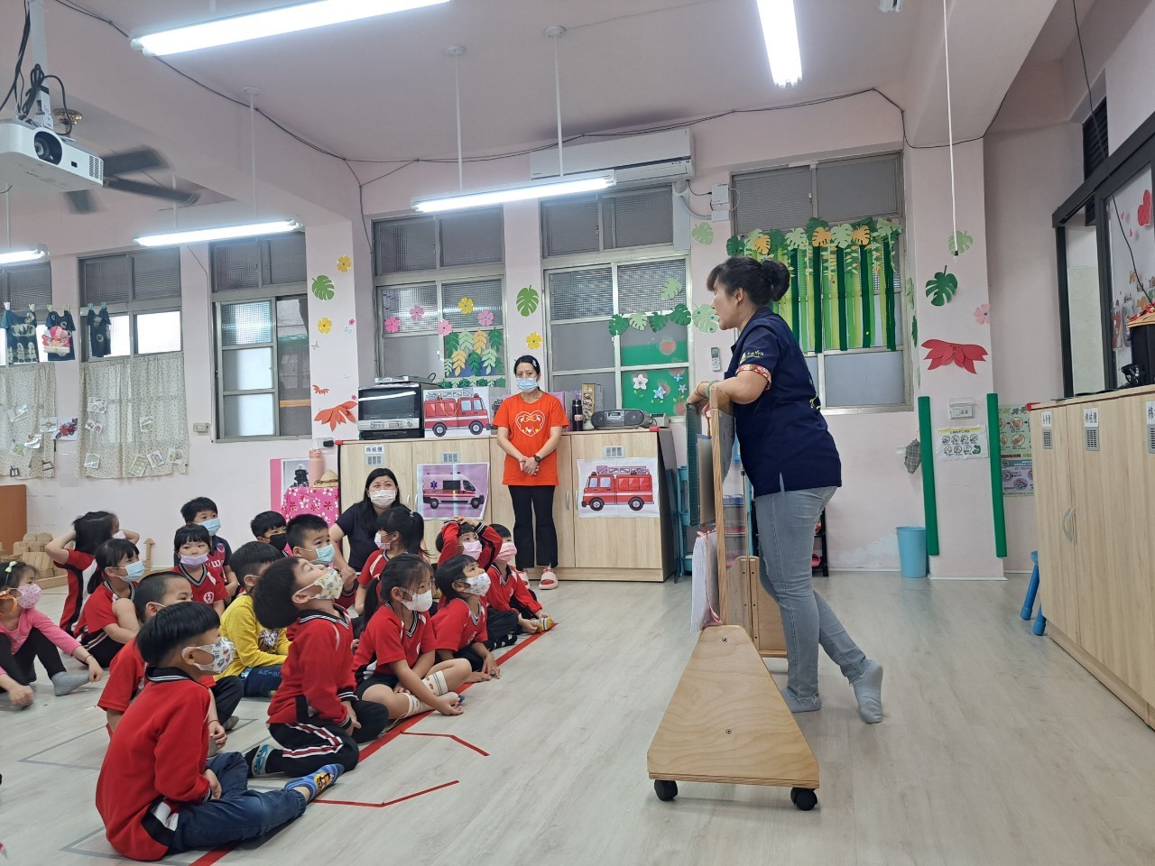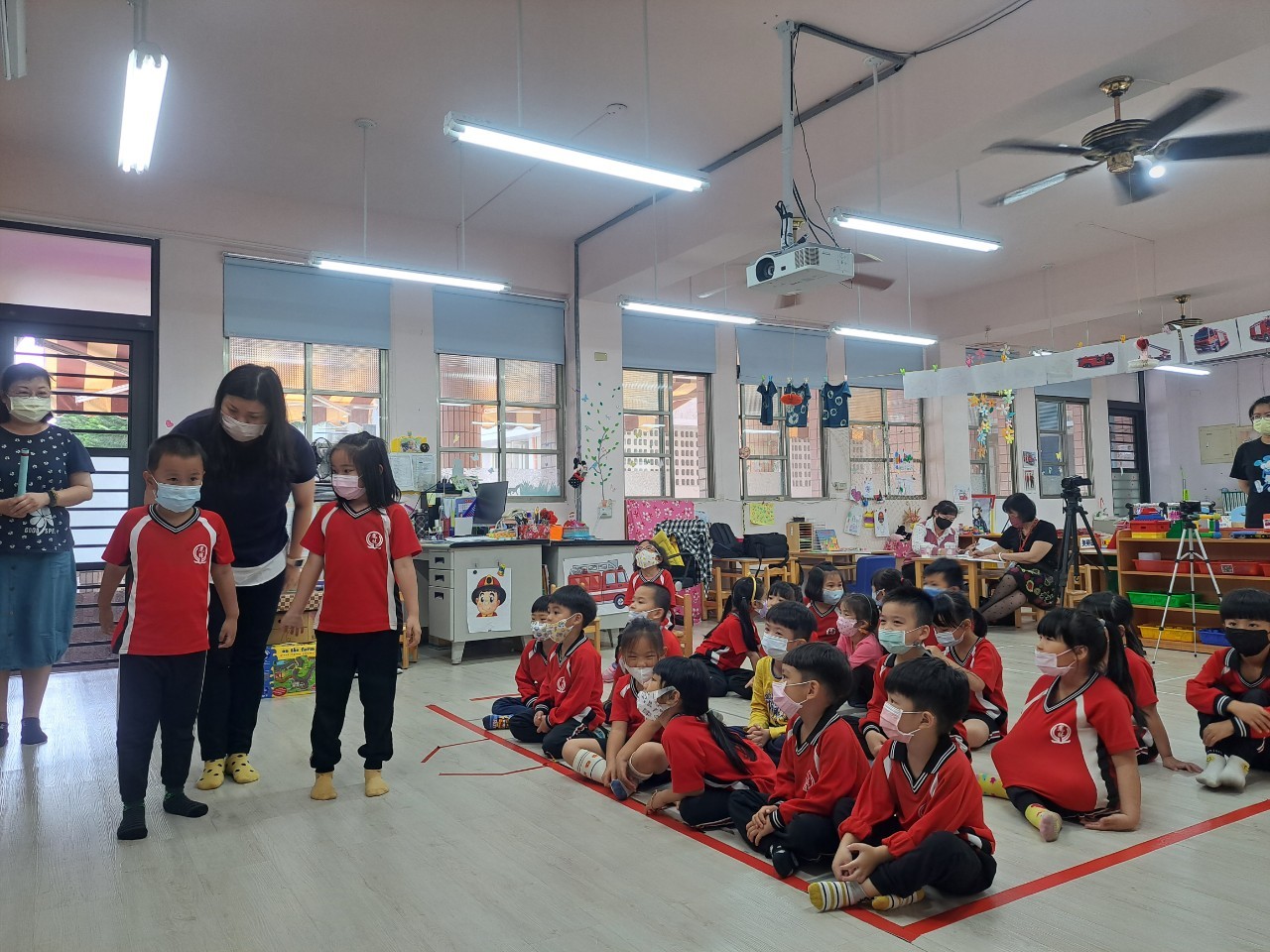 5月17日由輔導團成員鍾蕙伃校長及邱紫惠校長,進入鳳林國小附設幼兒園訪視客語教學狀況。鳳林國小附設幼兒園特別設計適合「混齡班」的沉浸式客語教案,課程開始前先帶領孩子用客語認識星期及天氣,在課程中由各班教保員沈千鈺、周育璇、廖憶玲、幼兒園主任林怡菁及黃瑞香薪傳師,共同演繹情境劇,將客語融入日常劇情,培養孩子於日常中使用客語的習慣。在課程後段,透過有溫度的手作教材帶領孩子認識身體部位,增加孩子們學習客語的意願,在課後孩子們也可以利用教材學習,透過整體課程教學及課後練習,提升孩子們客語學習之效果。