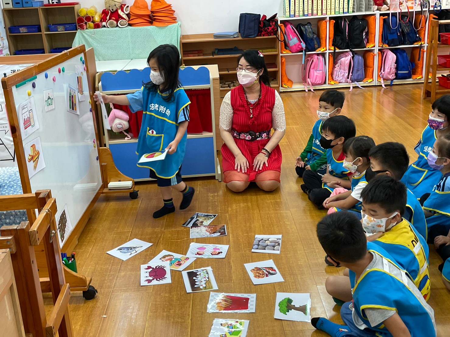 由輔導團成員邱紫惠校長及何芮瑤教授,於4月19日進入忠孝國小附設幼兒園,訪視客語教學狀況,當日課程主題為「健康新食代」,由客語薪傳師游淑梅老師,規劃以圖卡方式、遊戲形式跟孩子們互動,在玩樂中學習是游淑梅老師教學的核心,孩子們在課程最後都依依不捨,還想要再玩遊戲。