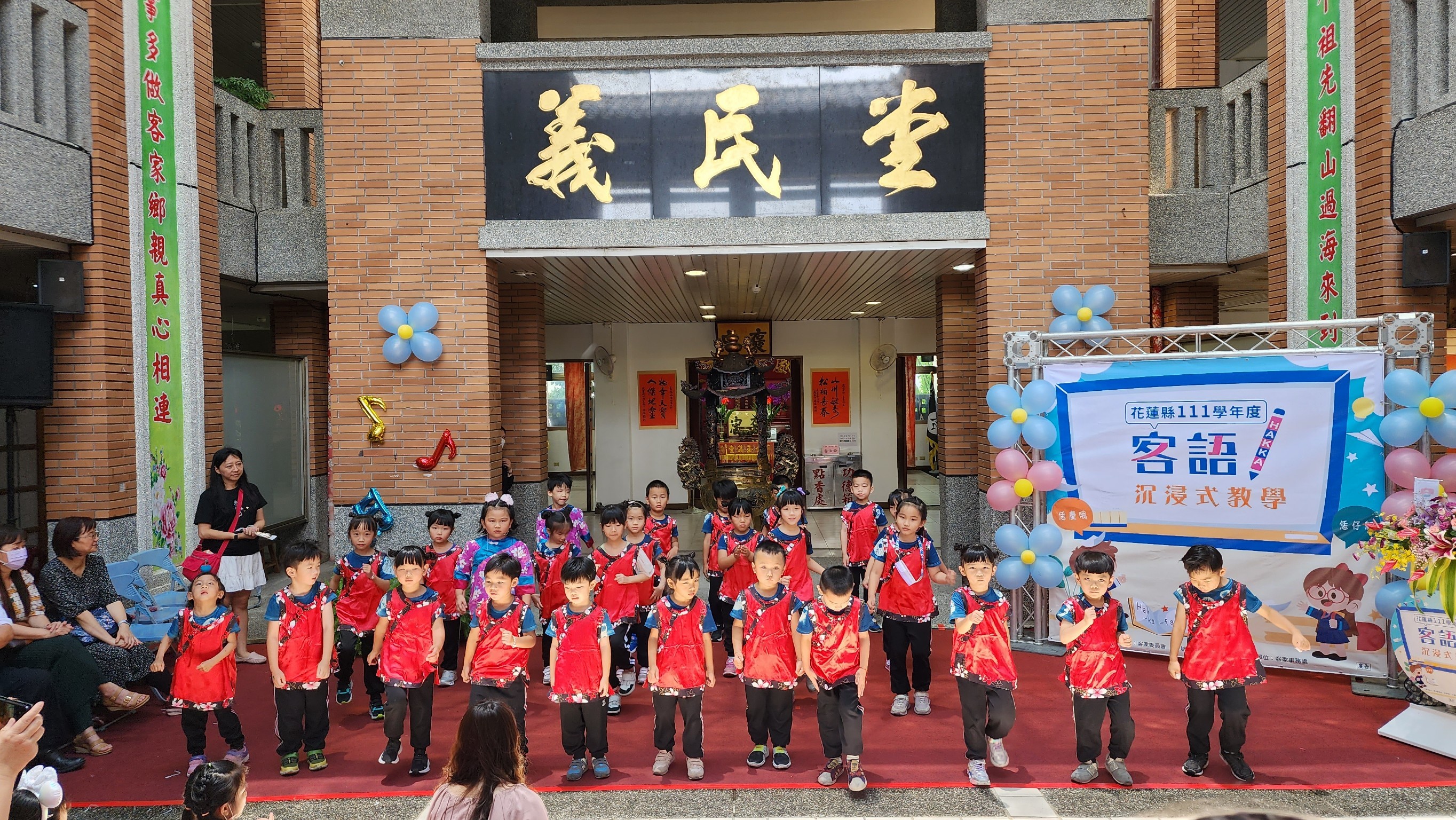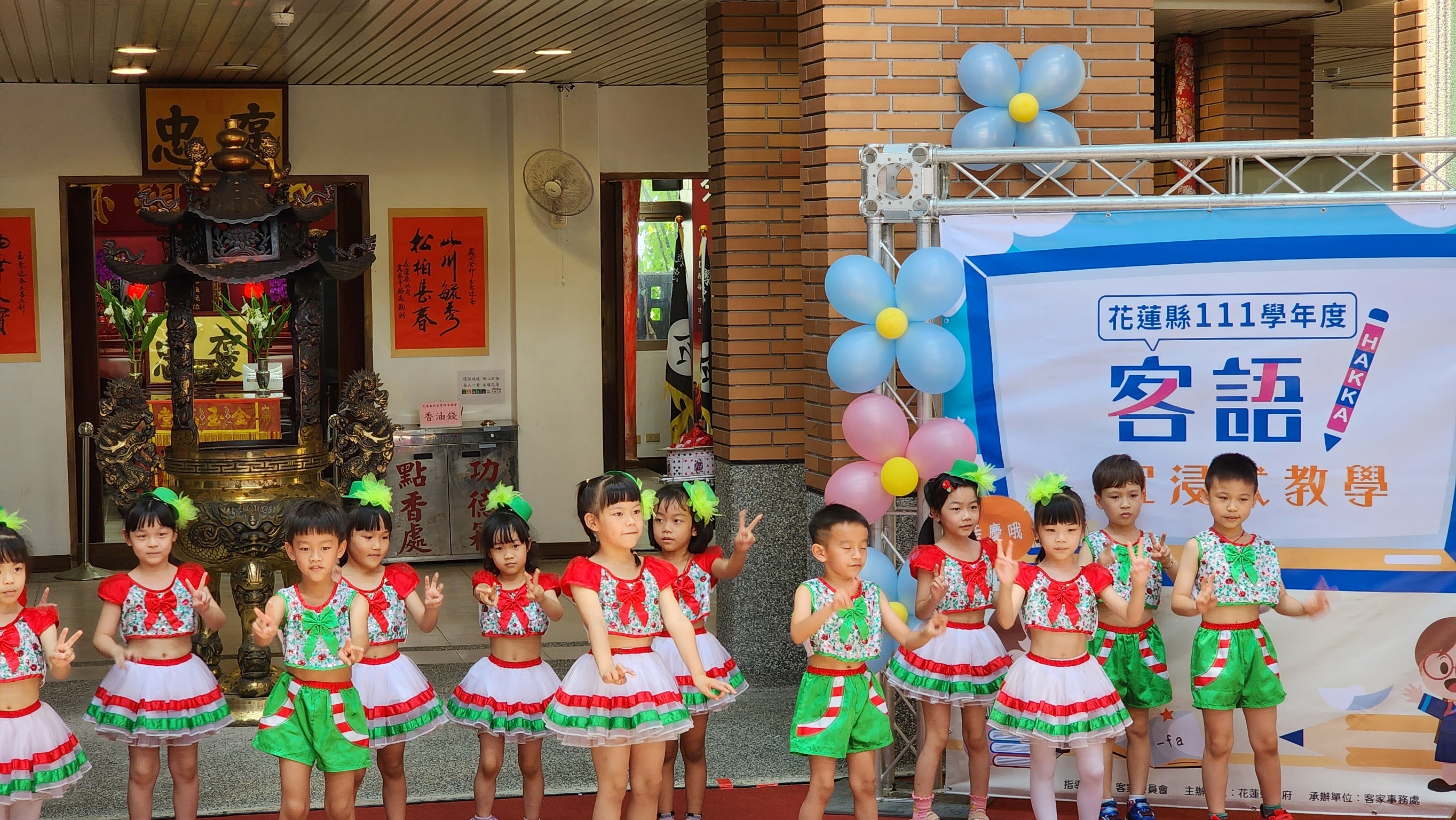 為了推廣客家文化,從小開始培養客家文化及語言之觀念,以沉浸式客語教學為目的,藉由舉辦沉浸式客語學習推廣園遊會,邀請鳳林國小附幼、忠孝國小附幼、稻香國小附幼及中原國小附幼的幼童們,進行成果展演及體驗闖關活動,以可愛生動客語舞蹈表演及口說藝術,展現沉浸式客語之教學成果,設計闖關活動,以客語單字卡結合客家童玩,讓幼童們在遊戲中體驗客家童玩及客語學習。 園遊會邀請腹語魔術師,表演魔術與觀眾互動,操作鸚鵡玩偶並以腹語說客語故事,在活動流程間有客家靚妹串場發放餅乾,增加活動歡樂氣氛,旁邊也有攤販及政令宣導攤位。 |