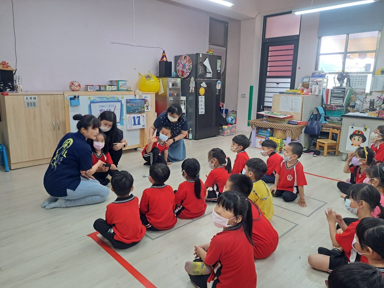 5月17日由輔導團成員鍾蕙伃校長及邱紫惠校長,進入鳳林國小附設幼兒園訪視客語教學狀況。鳳林國小附設幼兒園特別設計適合「混齡班」的沉浸式客語教案,課程開始前先帶領孩子用客語認識星期及天氣,在課程中由各班教保員沈千鈺、周育璇、廖憶玲、幼兒園主任林怡菁及黃瑞香薪傳師,共同演繹情境劇,將客語融入日常劇情,培養孩子於日常中使用客語的習慣。在課程後段,透過有溫度的手作教材帶領孩子認識身體部位,增加孩子們學習客語的意願,在課後孩子們也可以利用教材學習,透過整體課程教學及課後練習,提升孩子們客語學習之效果。